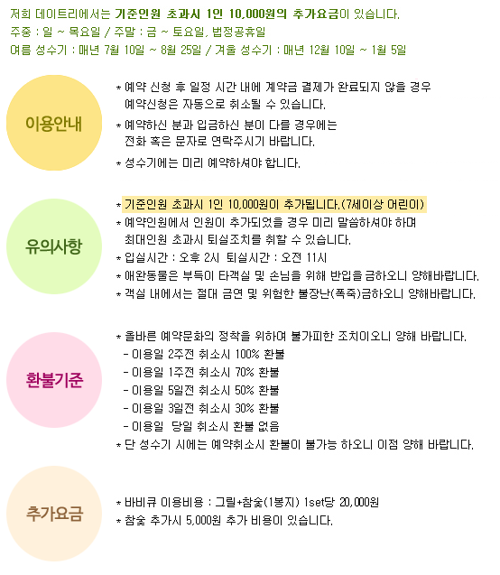 | 105 | 에뜨알 | 10 | 2인 | 4인 | 50,000 | 90,000 | 150,000 |